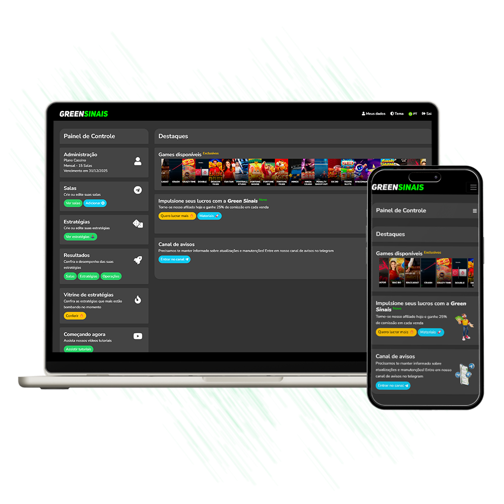 Os sinais entregam estratégia, controle e resultado. O jogador iniciante se sente confiante. O jogador experiente vê valor nos dados.